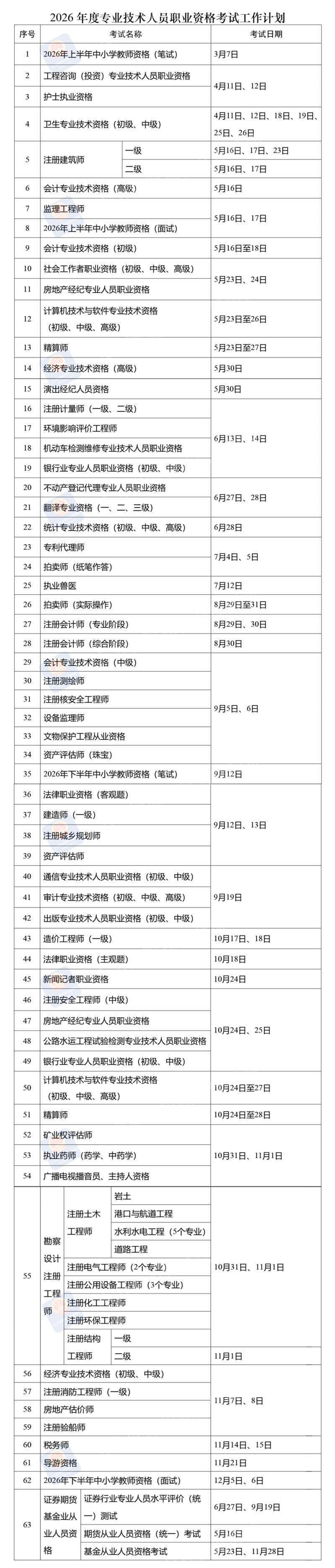 收好!2026这些职业资格考试时间表定了